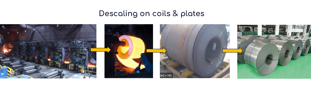การขจัดตะกรันในอุตสาหกรรมงานโลหะ โดยเฉพาะคอยล์และเพลท เป็นกระบวนการที่สำคัญหลังการเคลือบ หลังจากที่ต้องเผชิญกับอุณหภูมิสูงในระหว่างการเคลือบ ขดลวดและเพลตมักจะเกิดชั้นของตะกรันบนพื้นผิว หากไม่เอาตะกรันนี้ออก อาจขัดขวางการประมวลผลเพิ่มเติมและส่งผลต่อคุณภาพของผลิตภัณฑ์ขั้นสุดท้าย แม้ว่าการทำความสะอาดด้วยการอาบน้ำกรดจะถูกนำมาใช้โดยทั่วไป แต่การพ่นทรายเป็นสิ่งจำเป็นเพื่อเพิ่มการกำจัดตะกรันและยืดอายุการใช้งานของอ่างกรดเหล่านี้